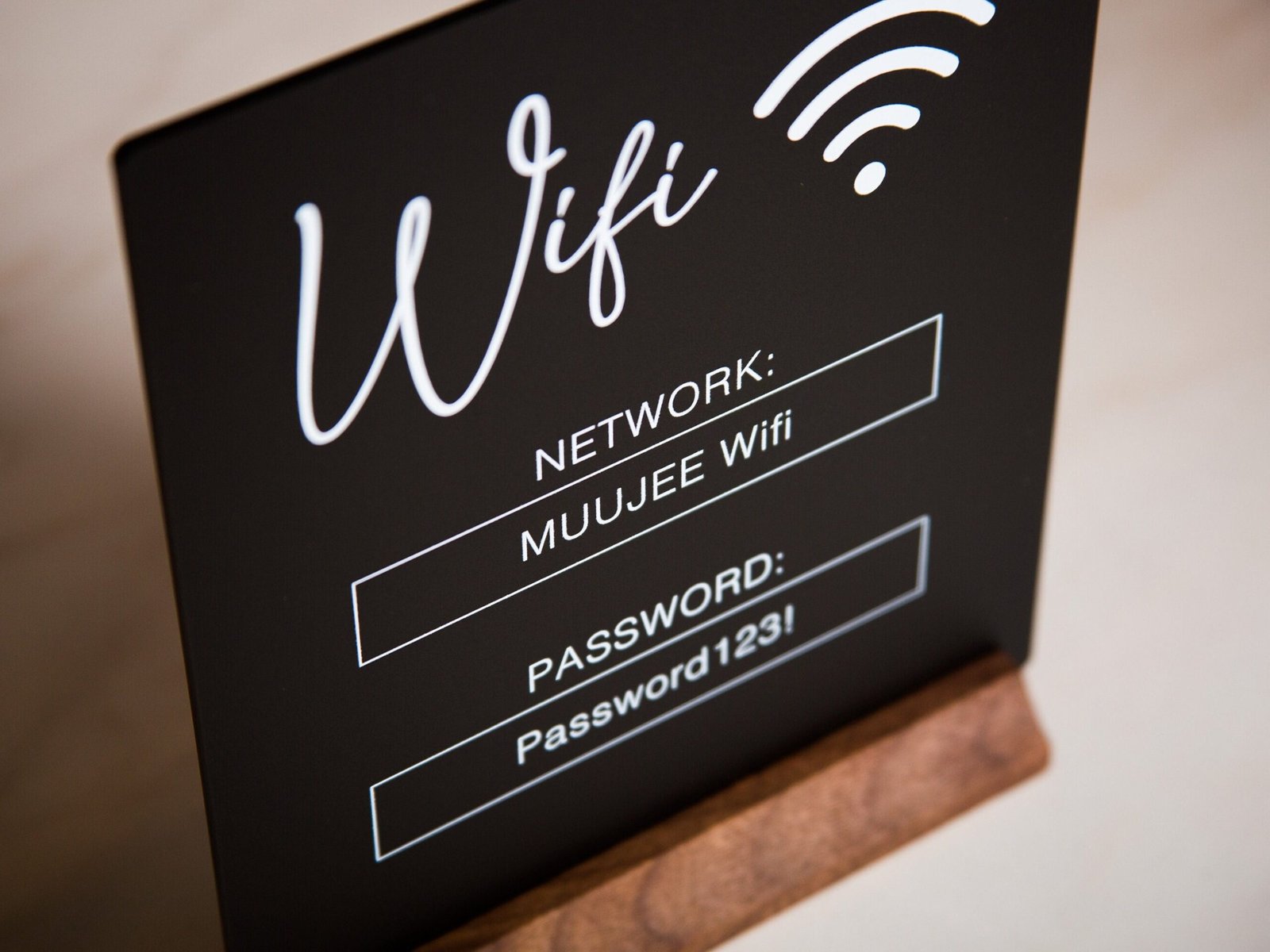 - Customizable design: Personalize the sign with your wifi network name and password, as well as any additional instructions or branding elements.